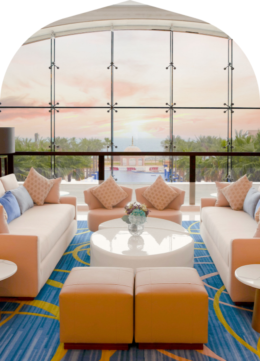 В номерах повышенной комфортности площадью 45 м² классический арабский стиль гармонично сочетается с современными удобствами и роскошью. Данная категория номеров предлагает гостям панорамные виды на великолепные зеленые сады или Персидский залив.